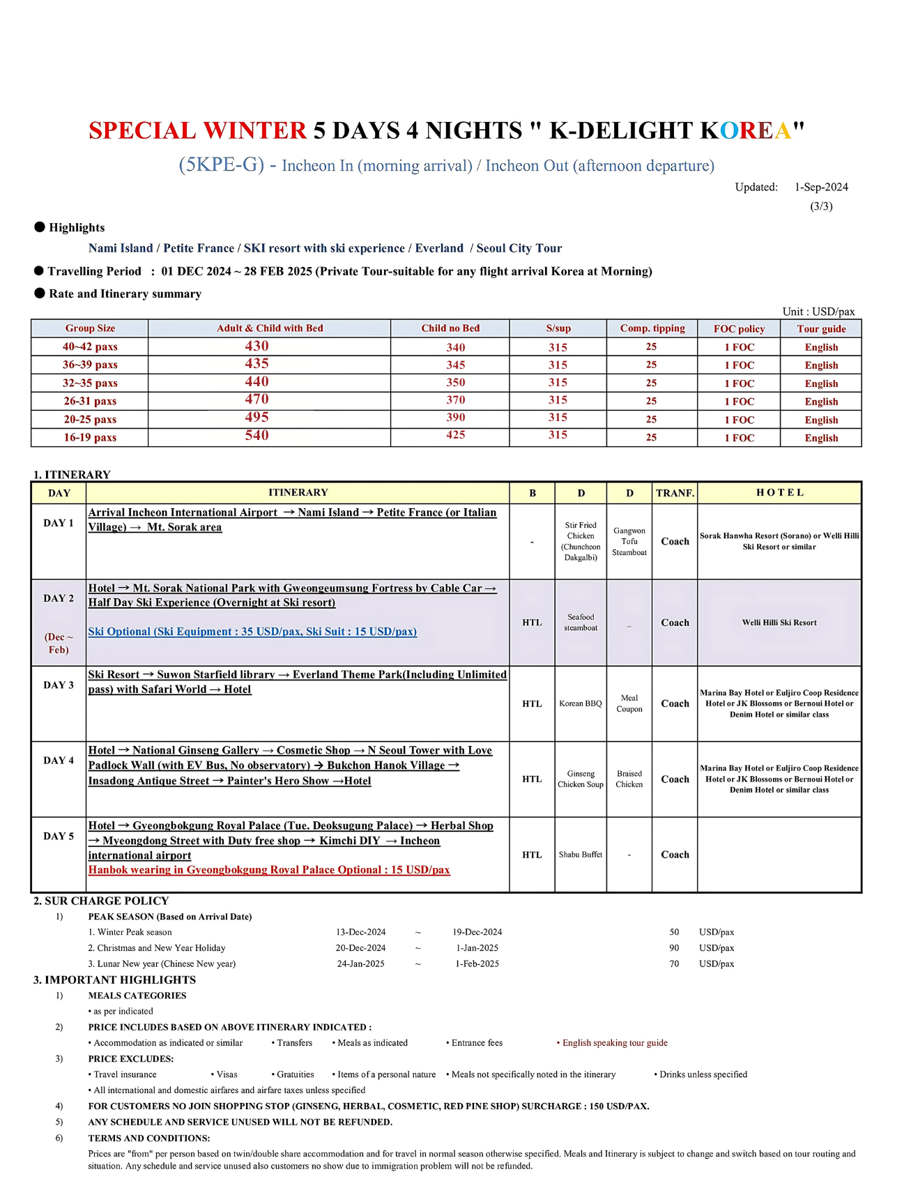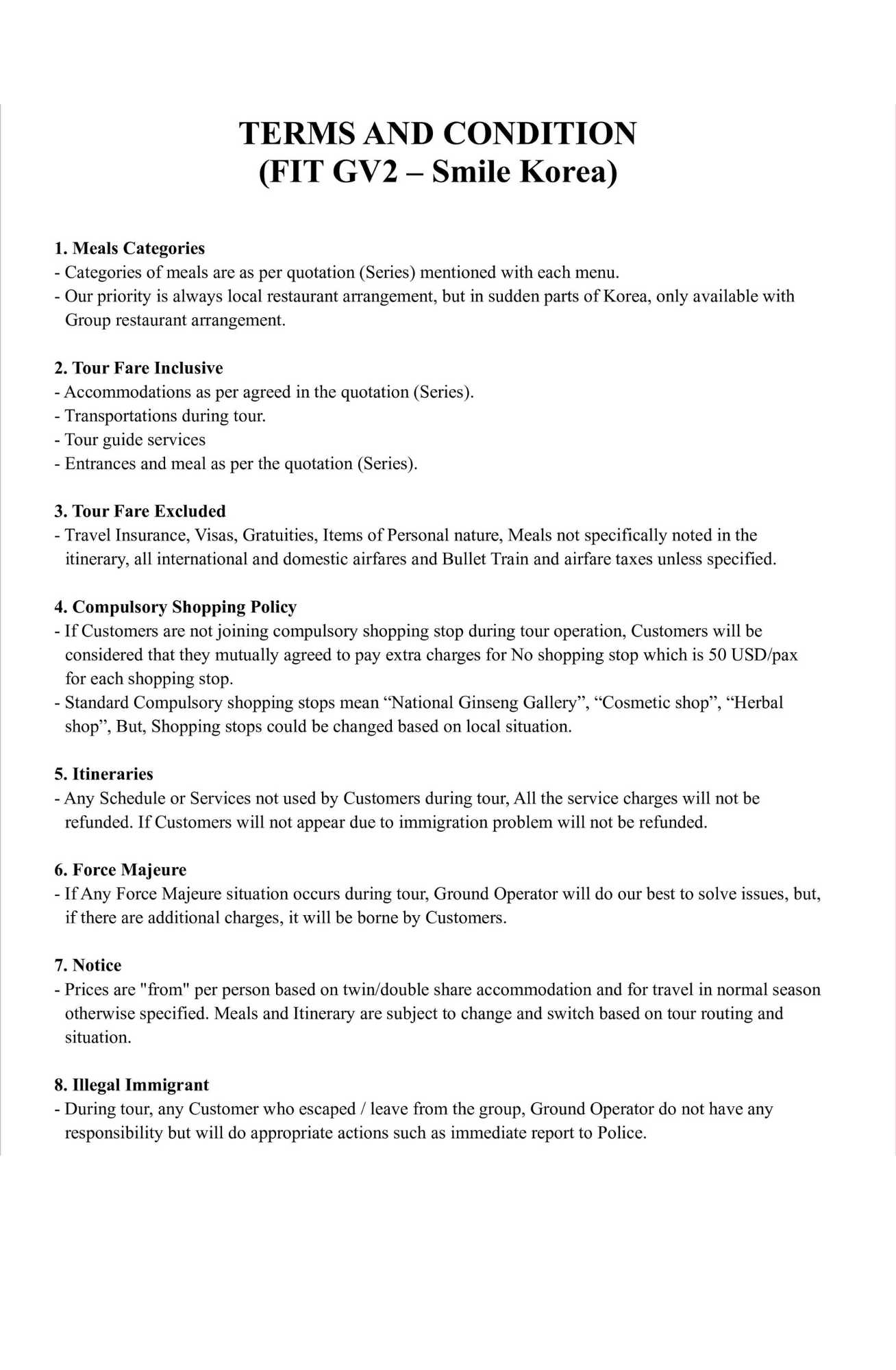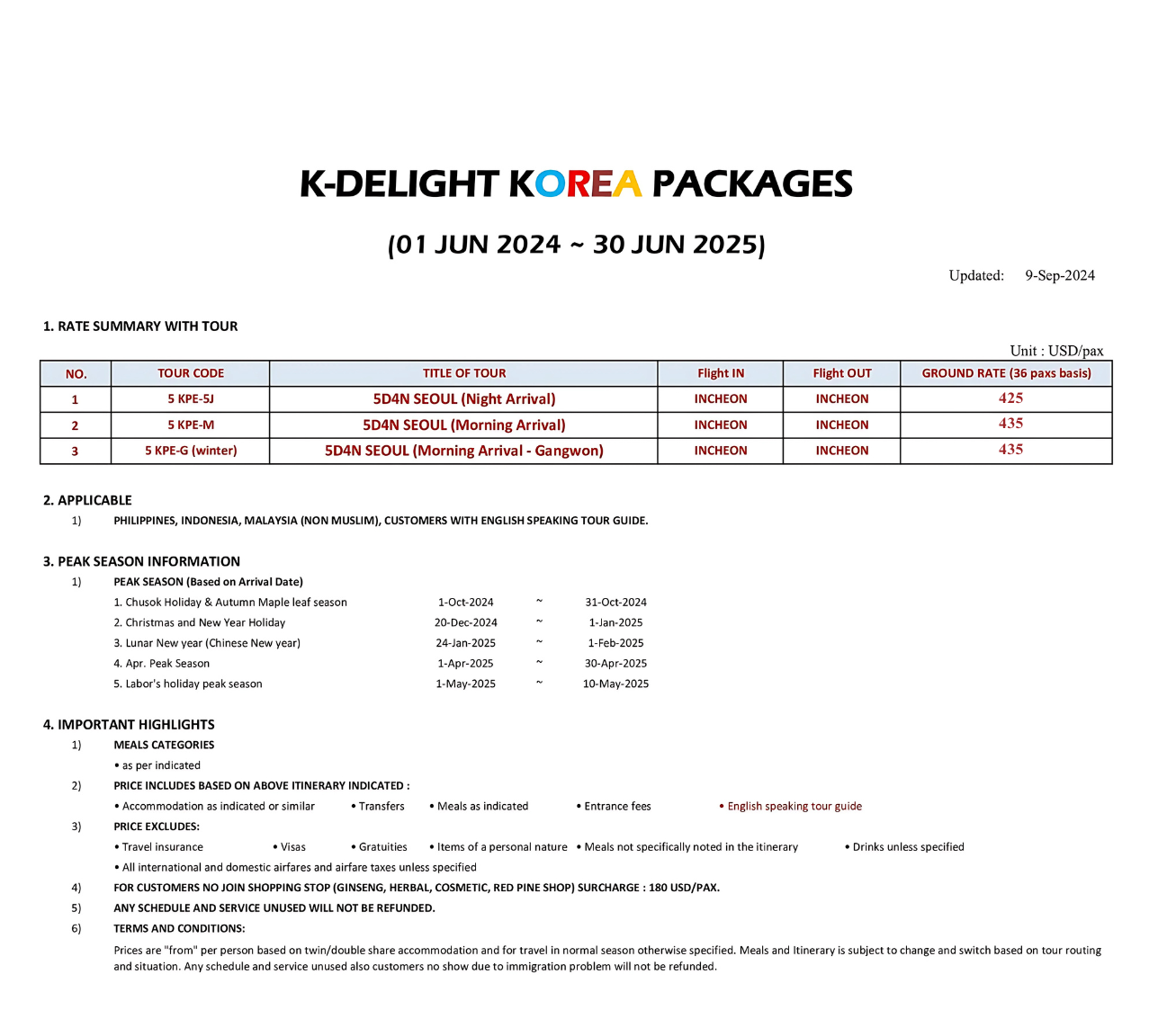 ANNUAL TARIFF KDELIGHT SEOUL WINTER SPRING AUTUMN TERMS AND CONDITIONS
