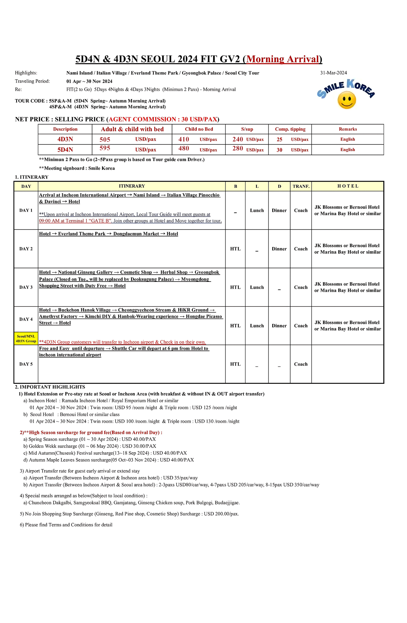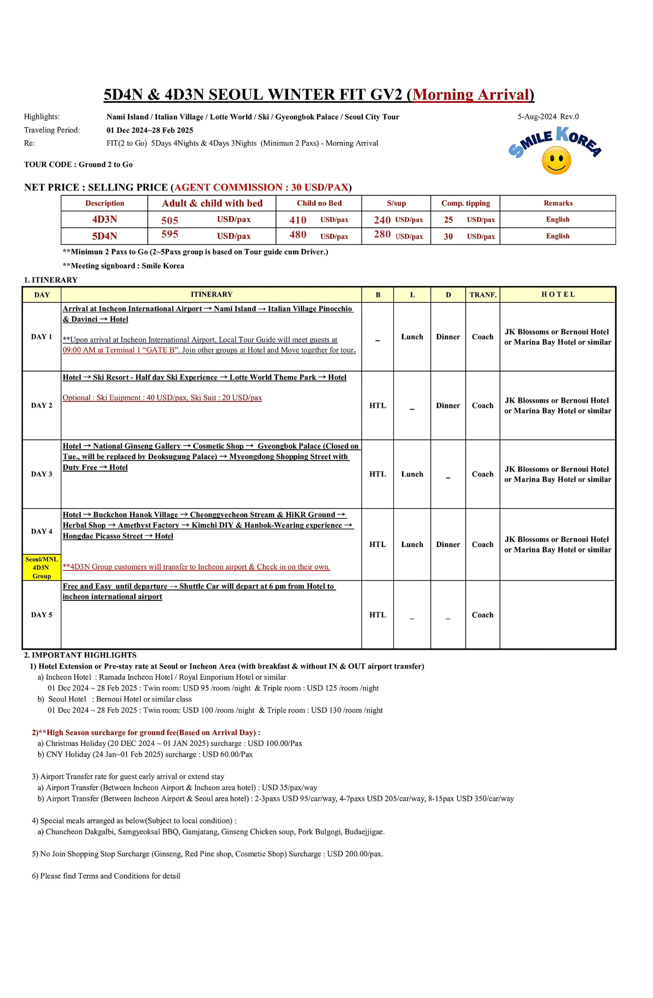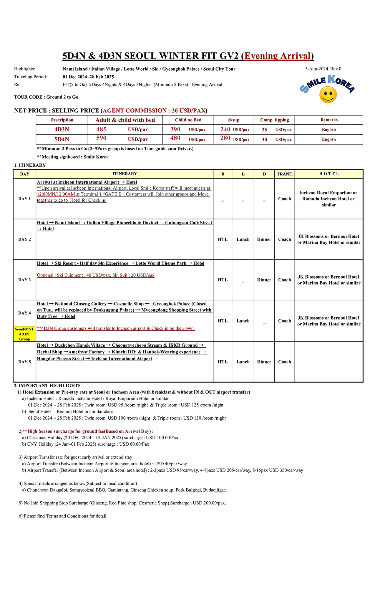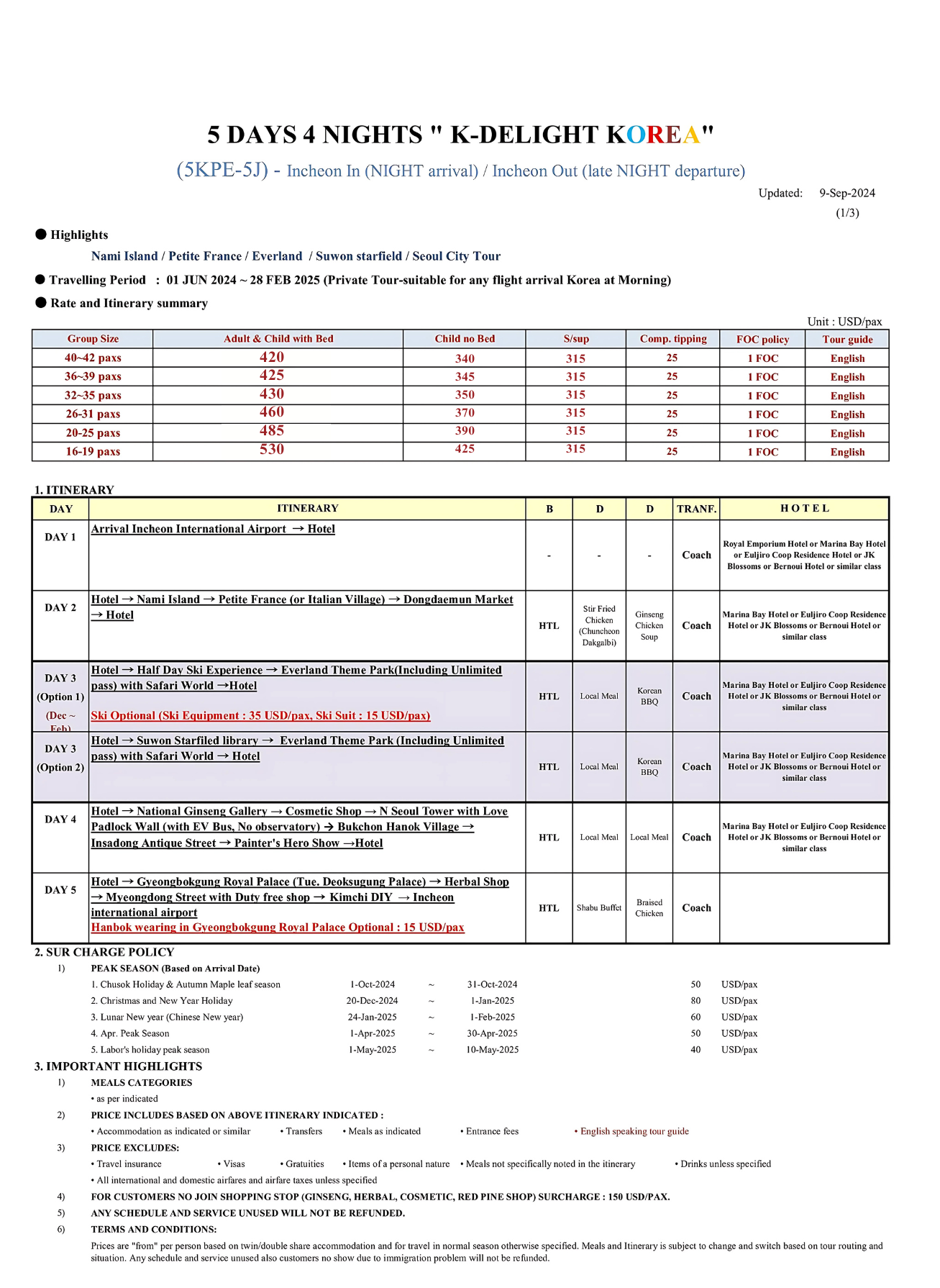 ANNUAL TARIFF KDELIGHT SEOUL WINTER SPRING AUTUMN TERMS AND CONDITIONS